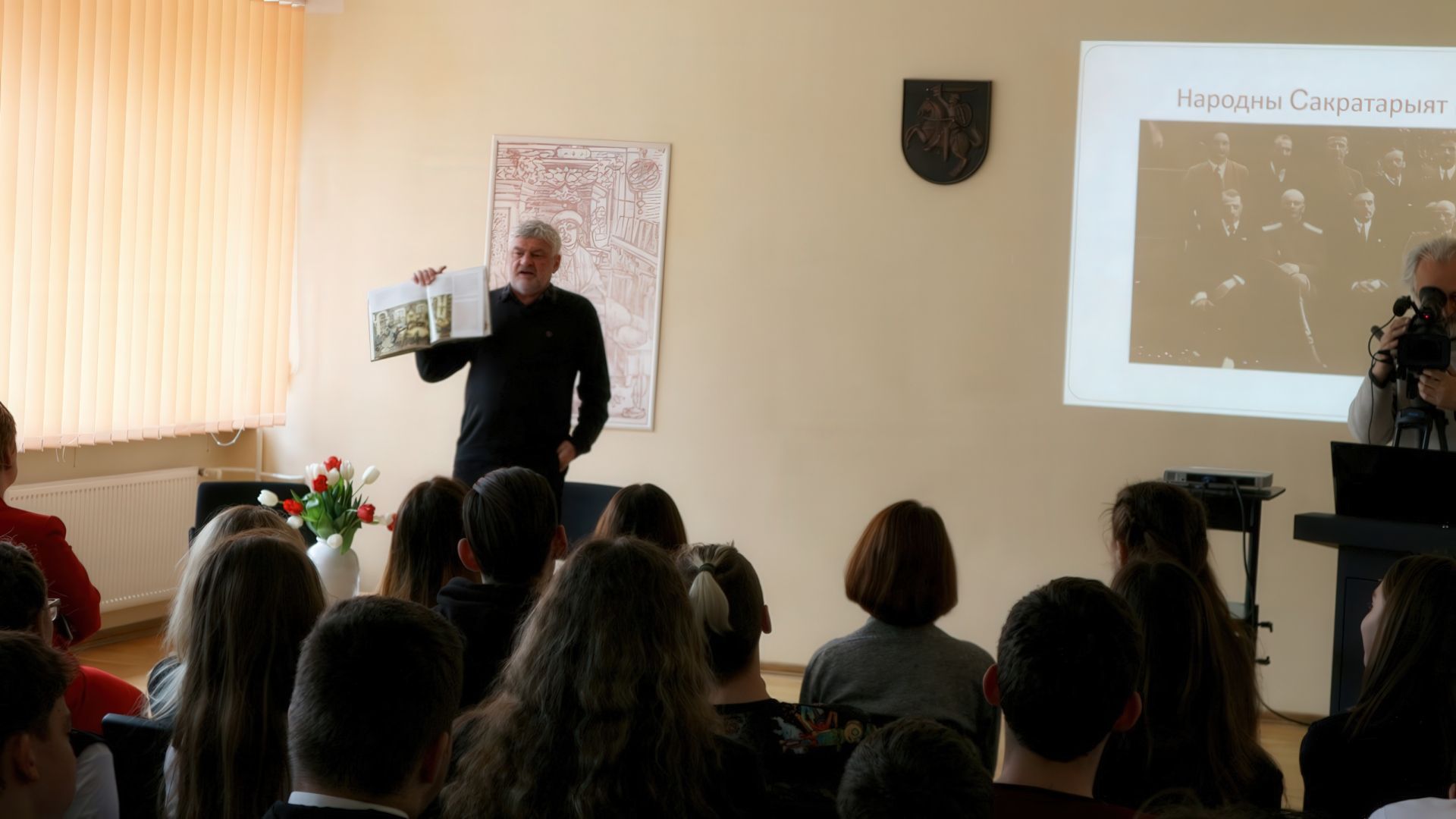 2018 m. kovo 23 dieną mūsų gimnazijoje svečiavosi Vladimiras Orlovas (Uladzimir Arlou) – žymus baltarusių prozininkas, poetas, istorikas, mokslinių-dokumentinių filmų scenarijų autorius. V.Orlovas (U. Arlou) – daugelio literatūrinių premijų laureatas, už Baltarusijos istorinės praeities vaizdavimą literatūroje apdovanotas Pranciškaus Skorinos medaliu. Jo kūriniai išversti į 25 pasaulio kalbas.
