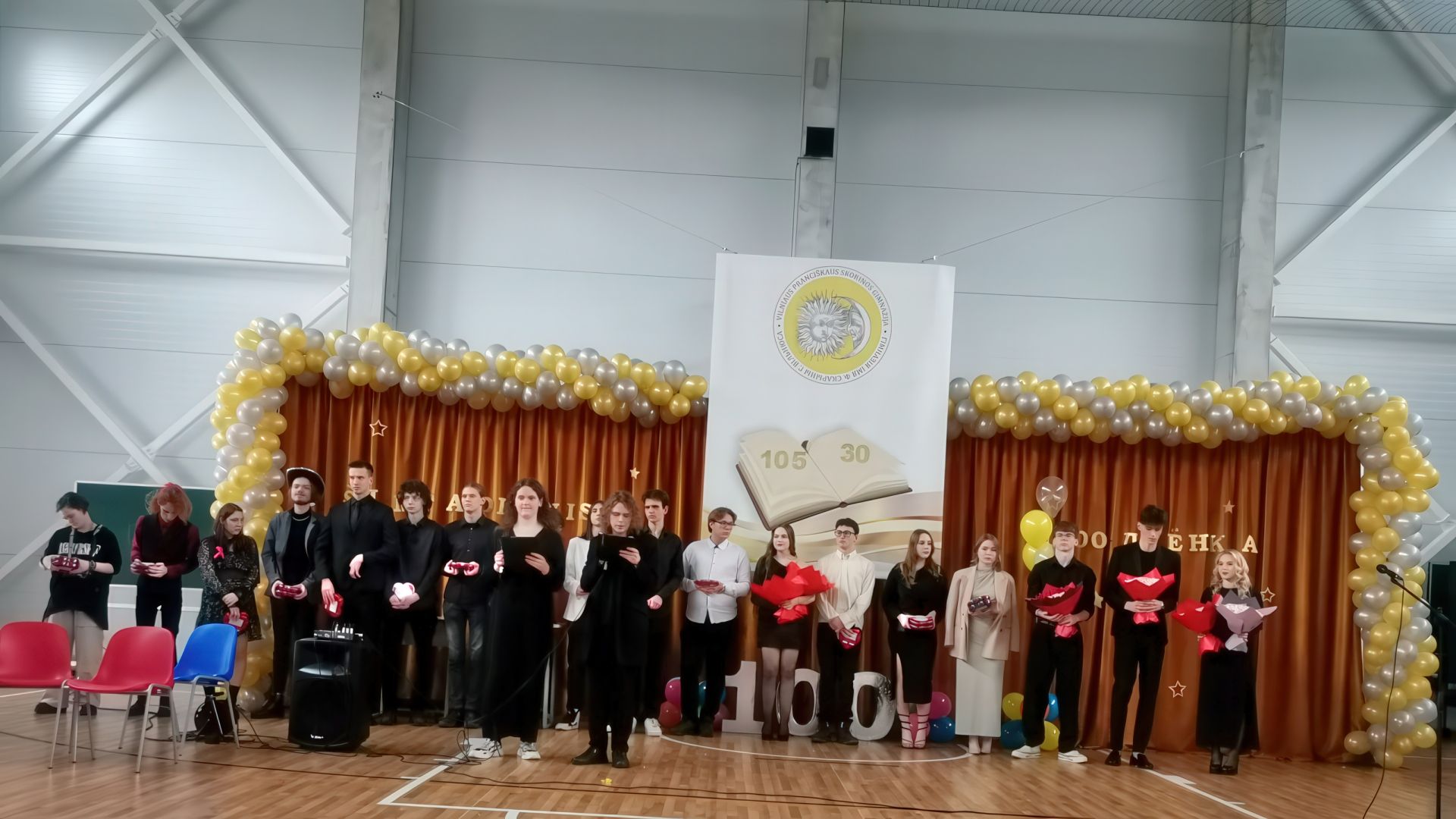 Penktadienį, vasario 9 d., gimnazijoje praūžė Šimtadienis – graži, jaunatviška ir linksma mokyklinė tradicija, simbolizuojanti veržlumą, polėkį, paliekanti smagius ir šiltus prisiminimus apie mokyklą, mokytojus ir mokslo draugus. Dvyliktokus sveikino gimnazijos direktorė, kitų klasių mokiniai paruošė šmaikščių užduočių, o patys abiturientai išsakė daug gražių padėkos žodžių mokytojams, klasės vadovei už pagalbą, kantrybę ir dėmesį. Linkime dvyliktokams sėkmės įveikiant paskutiniuosius 100 mokyklinių žingsnių.