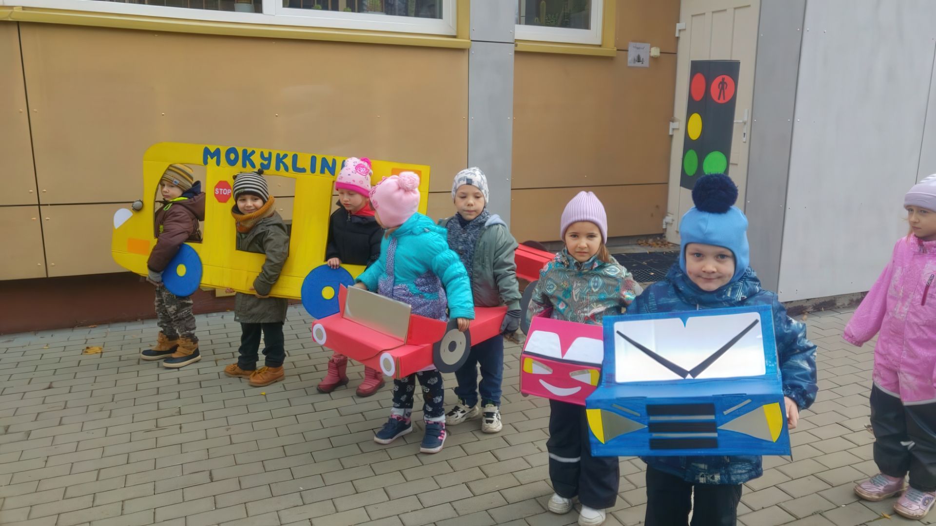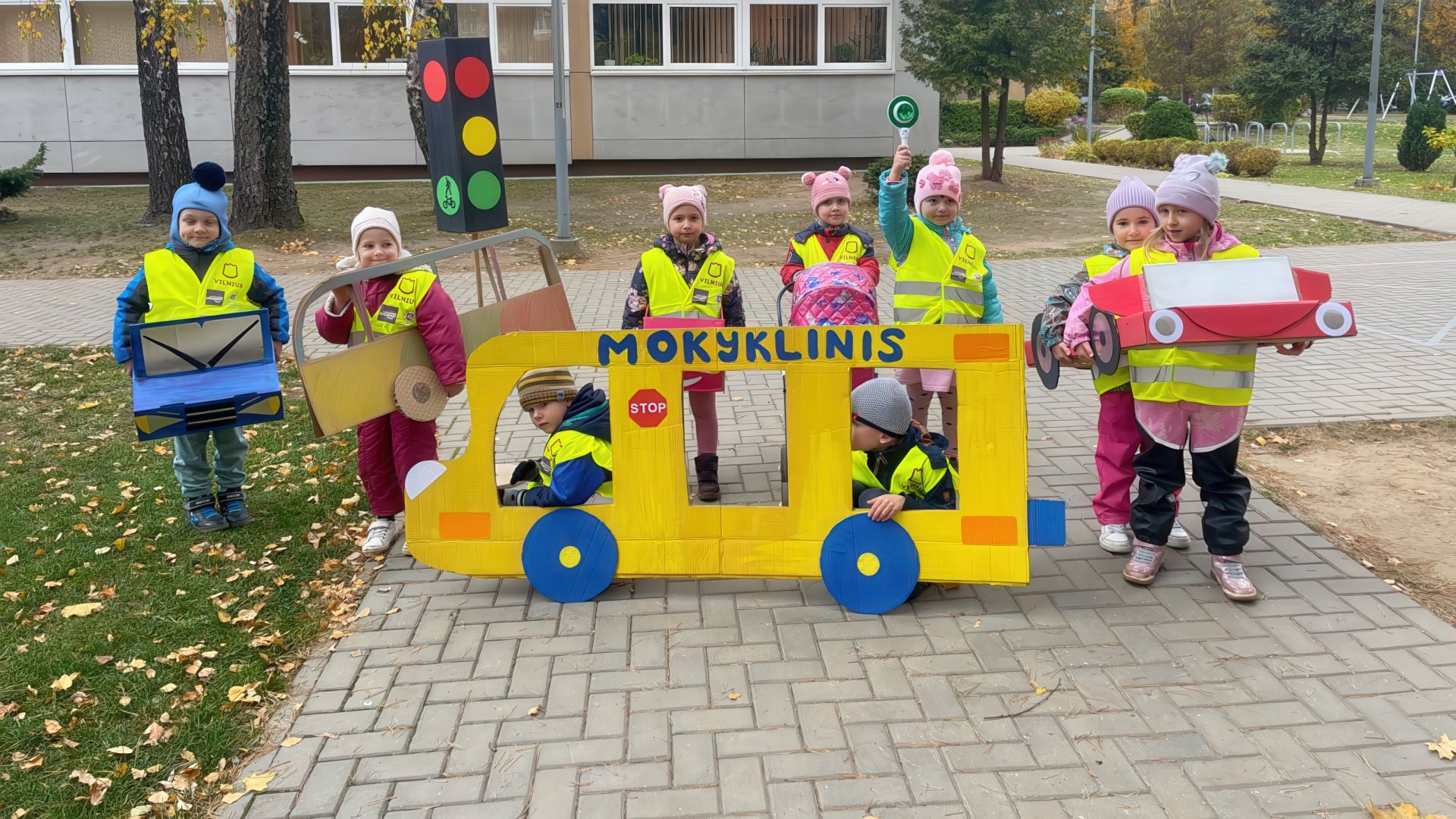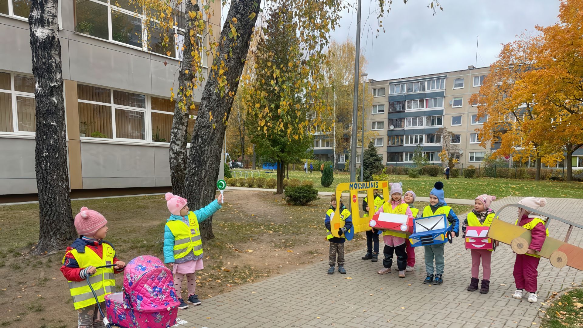 Spalio 25 d. ir lapkričio 5 d. priešmokyklinio ugdymo grupės „Saulytė“ ir ikimokyklinio ugdymo grupės „Vyturėlis“ vaikai dalyvavo veiklose, skirtose saugaus eismo įgūdžių įtvirtinimui. Jie prisiminė kelių eismo taisykles, piešė pėsčiųjų perėją, kelią su sankryžomis ir eismo ženklais, imitavo eismo dalyvius ir mokėsi tinkamai elgtis gatvėje. Mokytis eismo taisyklių padėjo papildomos priemonės: nupieštos kelio linijos, vaikų ir mokytojų pagamintas šviesoforas, transporto priemonės.