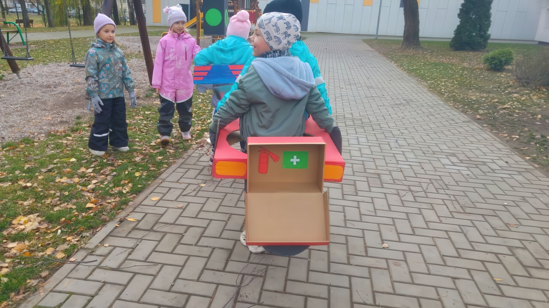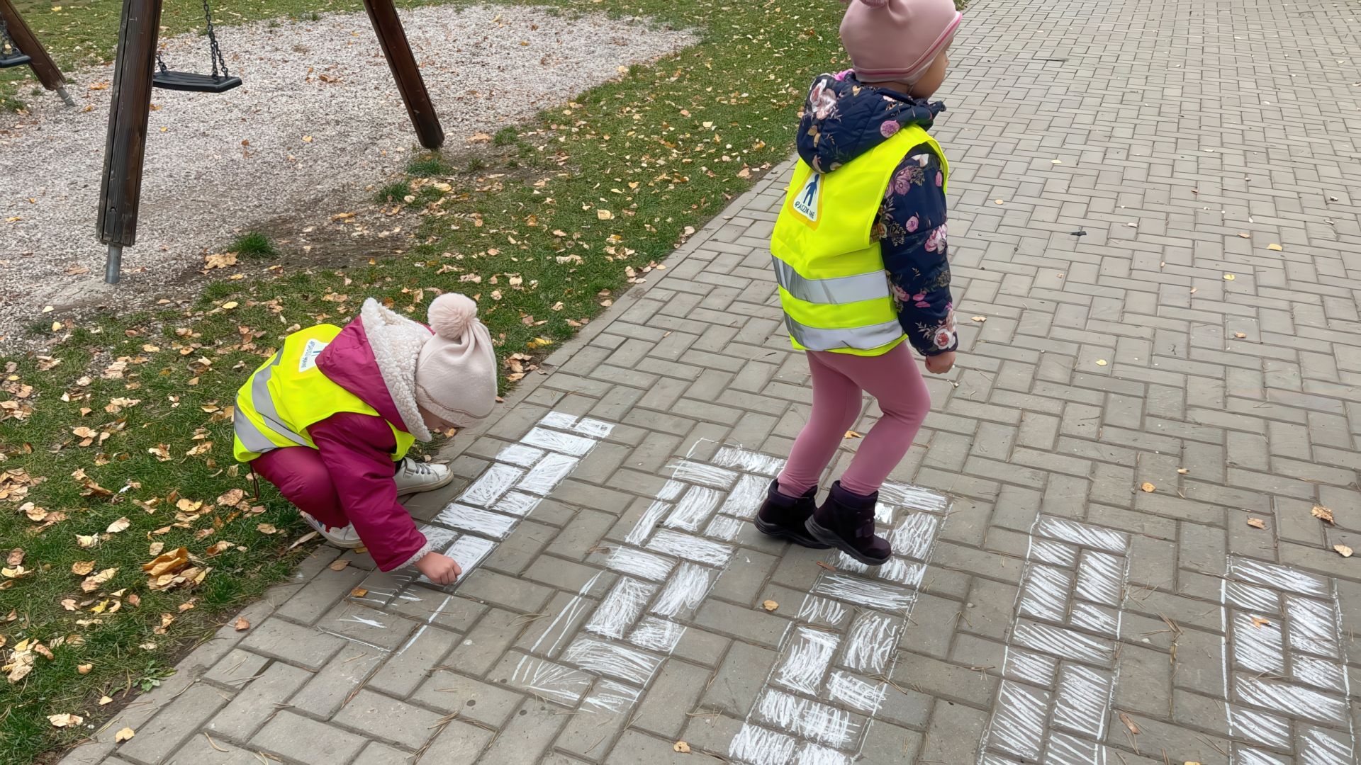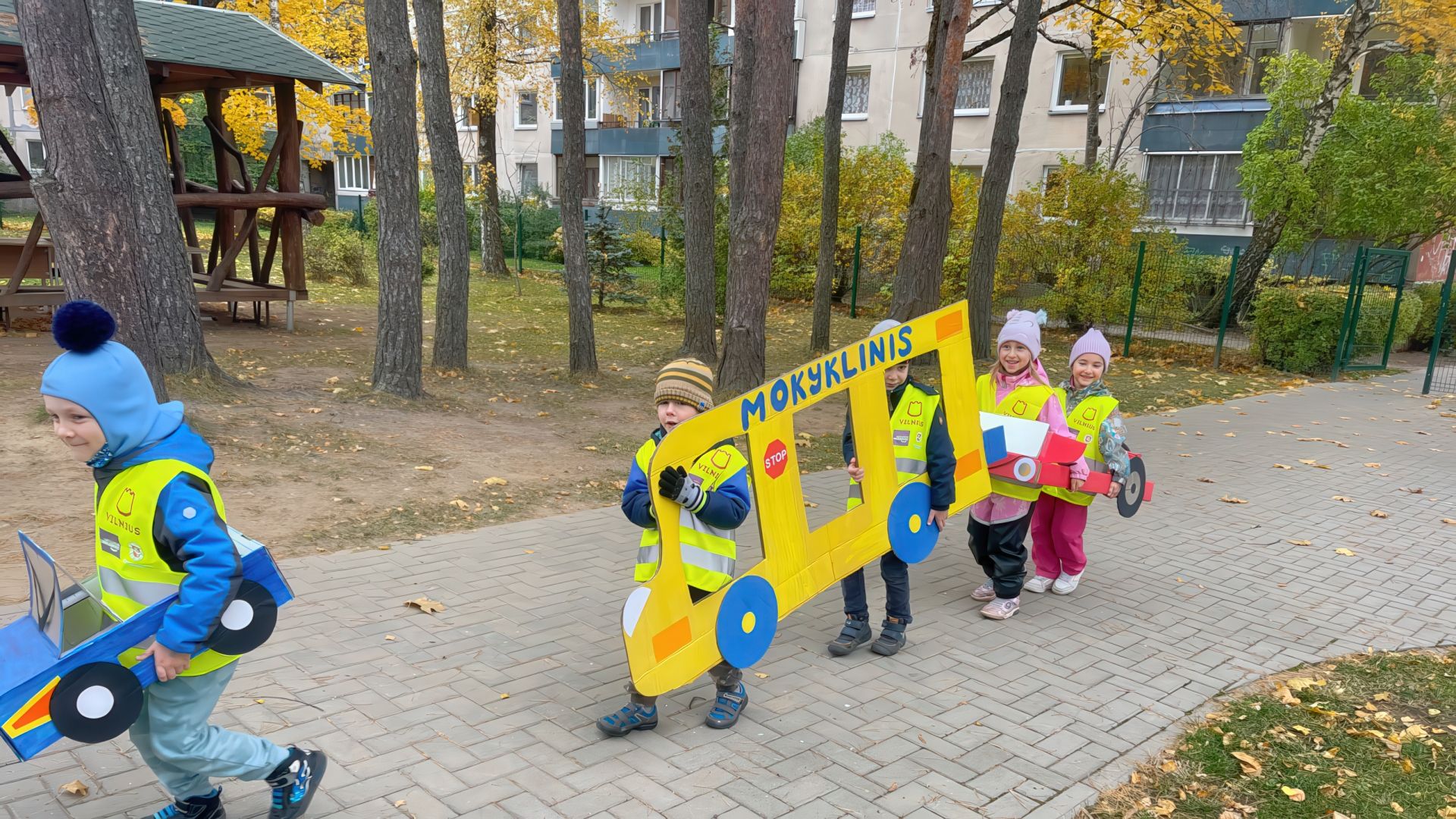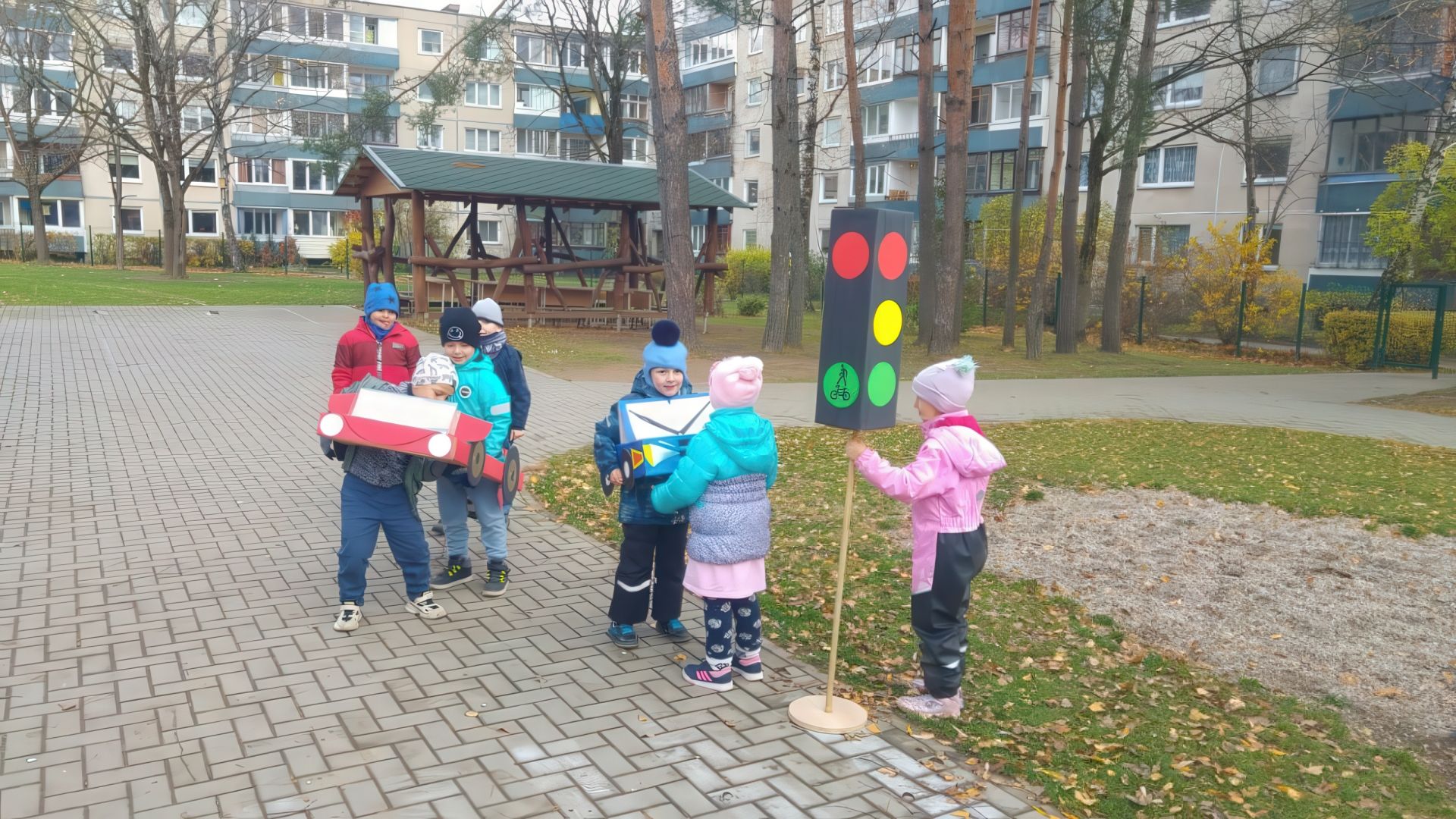 Spalio 25 d. ir lapkričio 5 d. priešmokyklinio ugdymo grupės „Saulytė“ ir ikimokyklinio ugdymo grupės „Vyturėlis“ vaikai dalyvavo veiklose, skirtose saugaus eismo įgūdžių įtvirtinimui. Jie prisiminė kelių eismo taisykles, piešė pėsčiųjų perėją, kelią su sankryžomis ir eismo ženklais, imitavo eismo dalyvius ir mokėsi tinkamai elgtis gatvėje. Mokytis eismo taisyklių padėjo papildomos priemonės: nupieštos kelio linijos, vaikų ir mokytojų pagamintas šviesoforas, transporto priemonės.