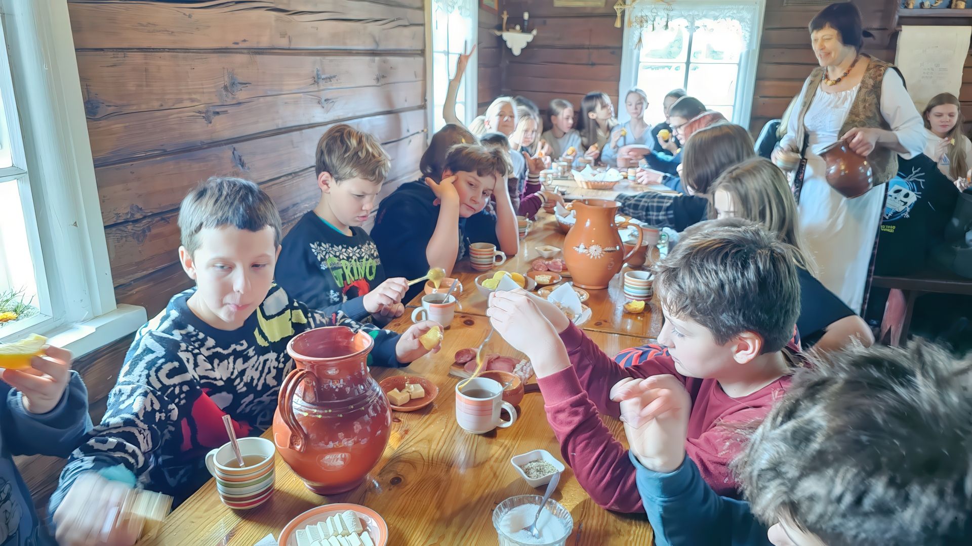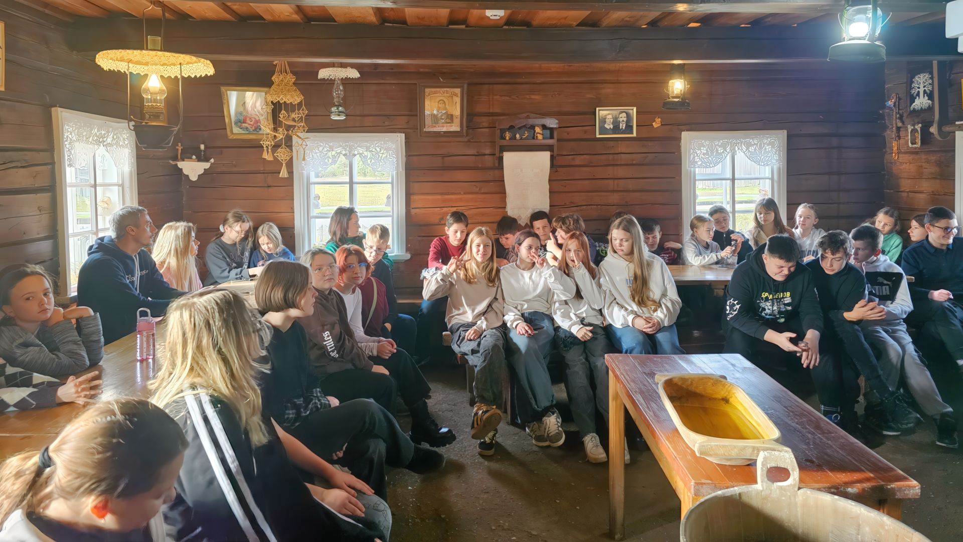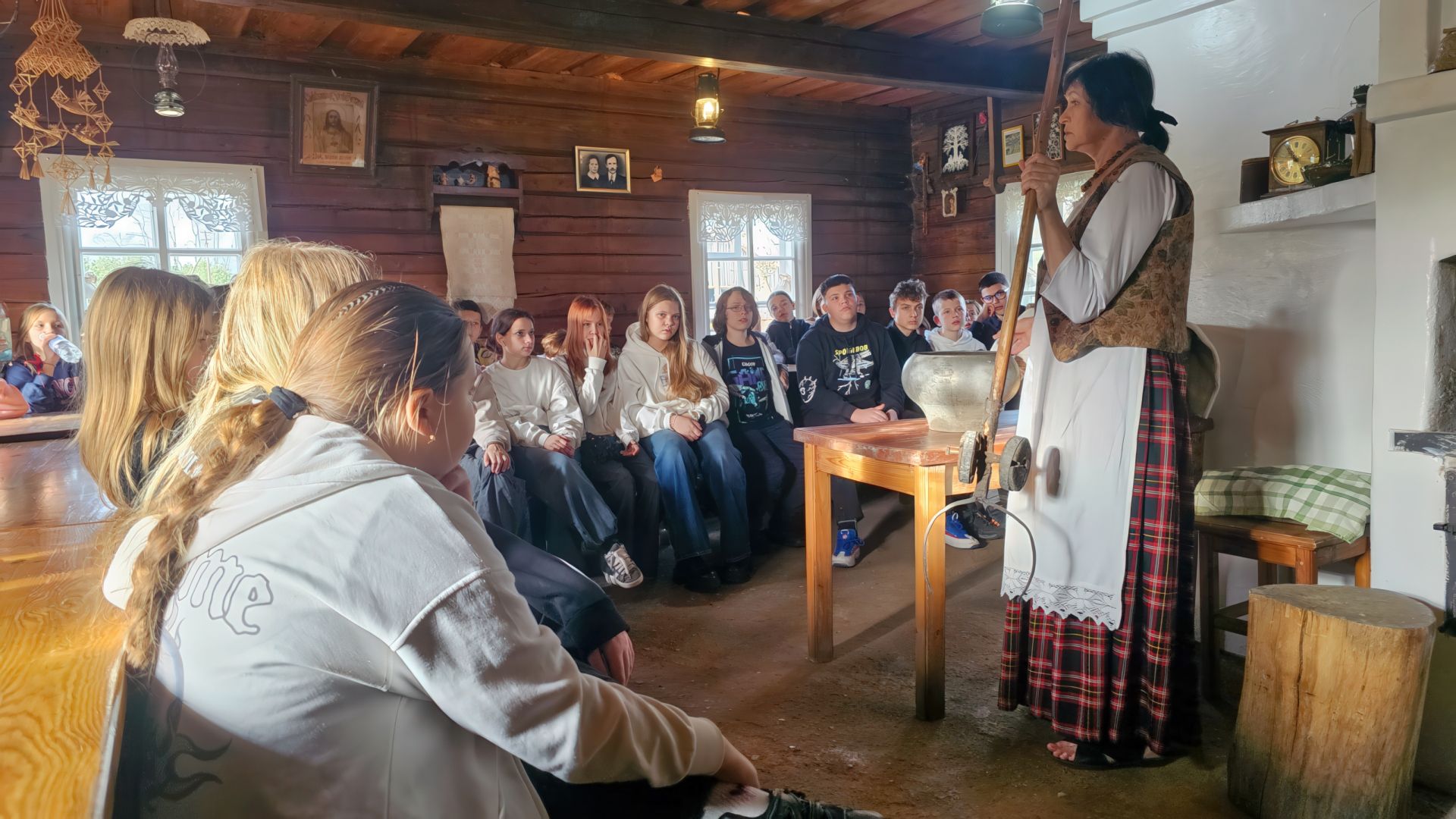 Mokiniai aplankė Medžių lajų taką, kuris yra vienintelis toks ne tik Baltijos šalyse, bet ir Rytų Europoje. Grožėjosi Šventosios upės vingiais, aplankė Puntuką – antrą pagal dydį ir labiausiai lankomą akmenį Lietuvoje. Keliaudami užsuko į Niūronių kaimą ir čia įsikūrusį unikalų Arklio muziejų. Apžiūrėjo senovinius žemės dirbimo padargus, senuose klojimuose saugomas ir jau beveik egzotinėmis tapusias transporto priemones: vežimus, bričkas, lineikas ir fajetonus. Mokiniai dalyvavo edukaciniame užsiėmime „Duonelė kasdieninė“. Autentiškoje XX a. pradžią menančioje troboje susipažino su mūsų etninės kultūros simbolio – duonos keliu nuo rugių sėjos iki duonos riekės. Edukatorė papasakojo apie rugių sėjimą, kūlimą, malimą, duonos raugimą ir užmaišymą. Vaikai sužinojo apie senolių duonos kepimo papročius ir pagerbimo ritualus, šeimos tradicijas, susipažino su senoviniais buities rakandais. Kiekvienam mokiniui buvo suteikta nepakartojama galimybė pačiam suformuoti ir ką tik iškūrentoje duonkepėje išsikepti savo duonos kepalėlį.