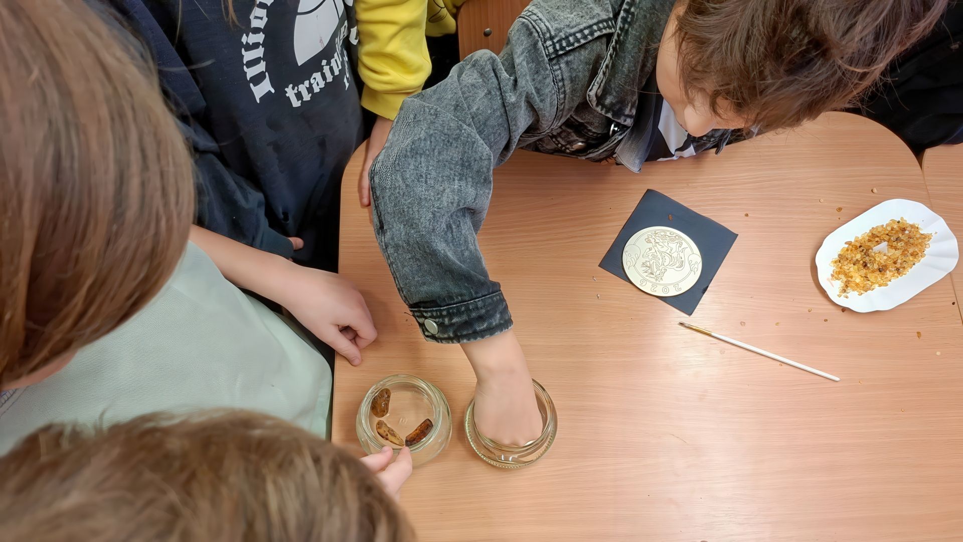Gruodžio 3 dieną priešmokyklinio ugdymo grupės vaikai ir 1-5 klasių mokiniai dalyvavo edukaciniame užsiėmime „Gintaras – Baltijos kelias“. Mokiniai sužinojo, kaip iš pušų sakų susidarė gintaras, aptarė jo spalvas. Vaikai mokėsi atpažinti tikrą gintarą, šlifavo jį ir net galėjo užuosti jo natūralų aromatą. Naudodami didinamąjį stiklą jie stebėjo gintaro inkliuzus, aptarė, kokius gyvius matė. Kūrybinėje užsiėmimo dalyje mokiniai gamino unikalius gintarinius magnetukus.